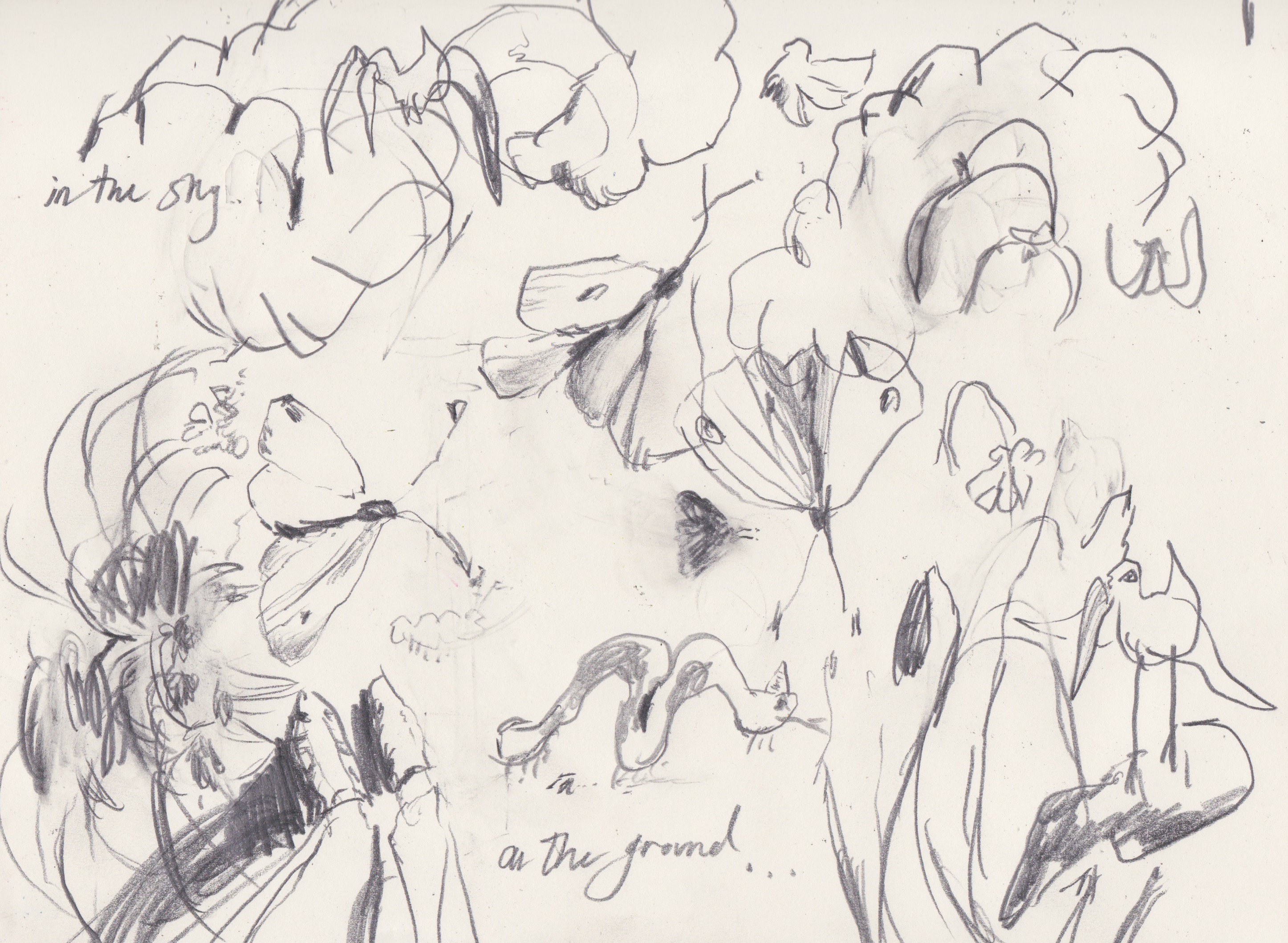 of wonder and joy sparked by drawing in order to conceptualize illogical and simultaneous forms of the world that take place in the artist's studio.